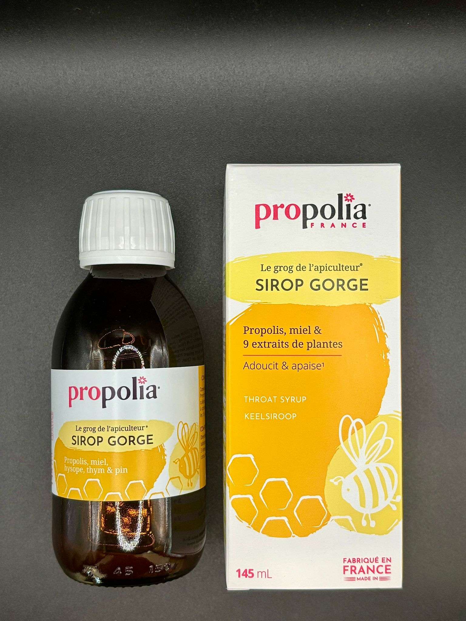 SIROP GORGE PROPOLIS MIEL & 9 EXTRAITS DE PLANTES ADOUCIT ET APAISE 145mL