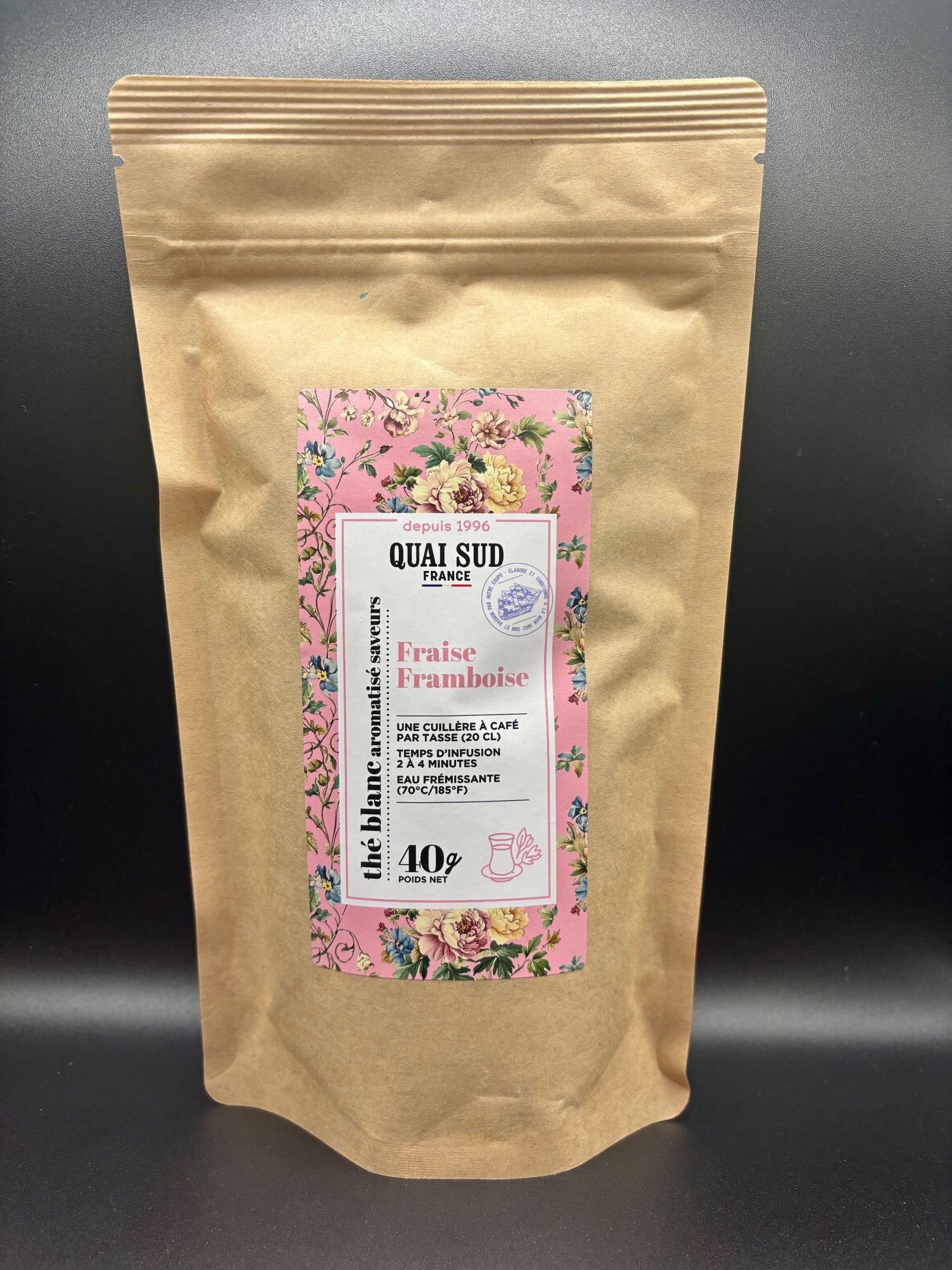 Découvrez le Thé Blanc Fraise Framboise en sachet de Quai Sud, une infusion raffinée qui marie la légèreté du thé blanc aux notes fruitées de fraise et de framboise. Léger, aromatique et savoureux, il se déguste chaud ou glacé pour un moment de douceur et de plaisir à tout moment de la journée.